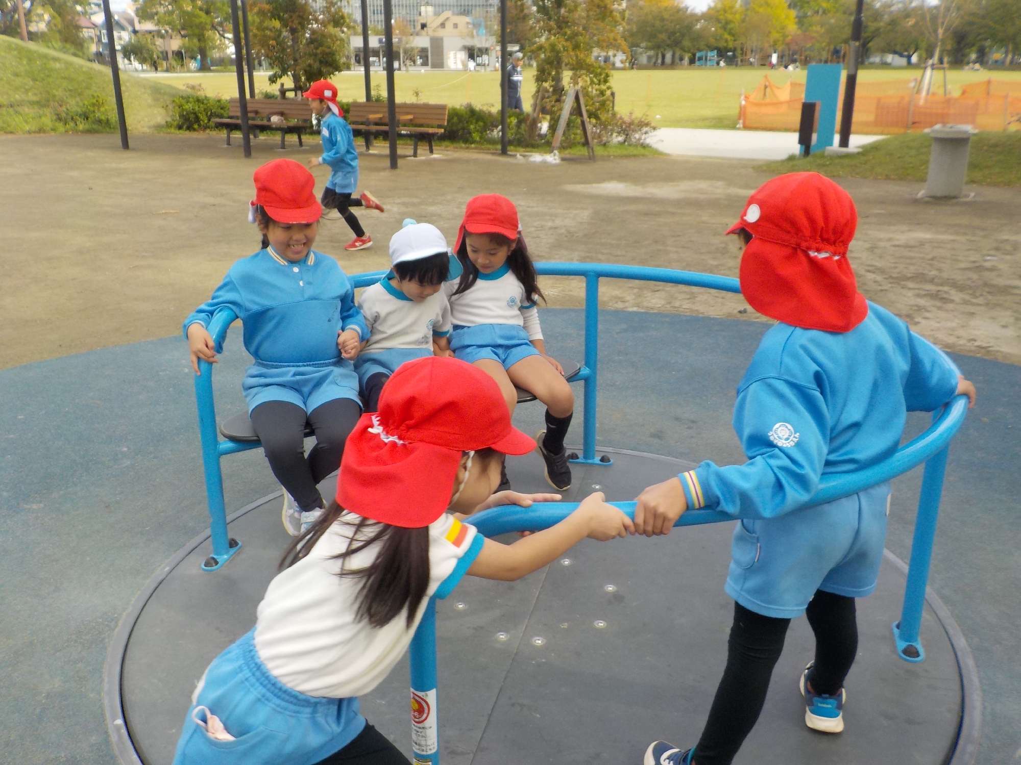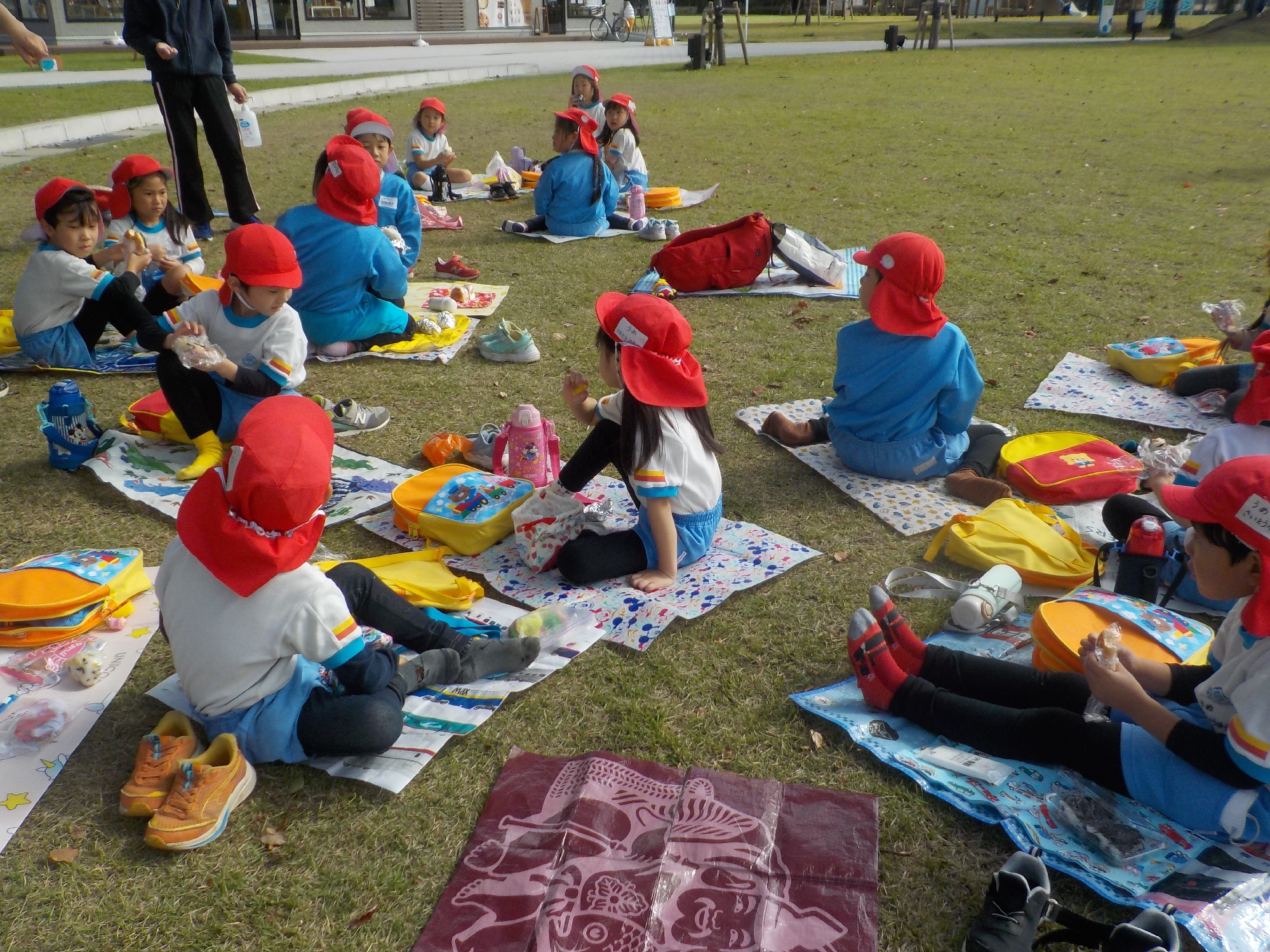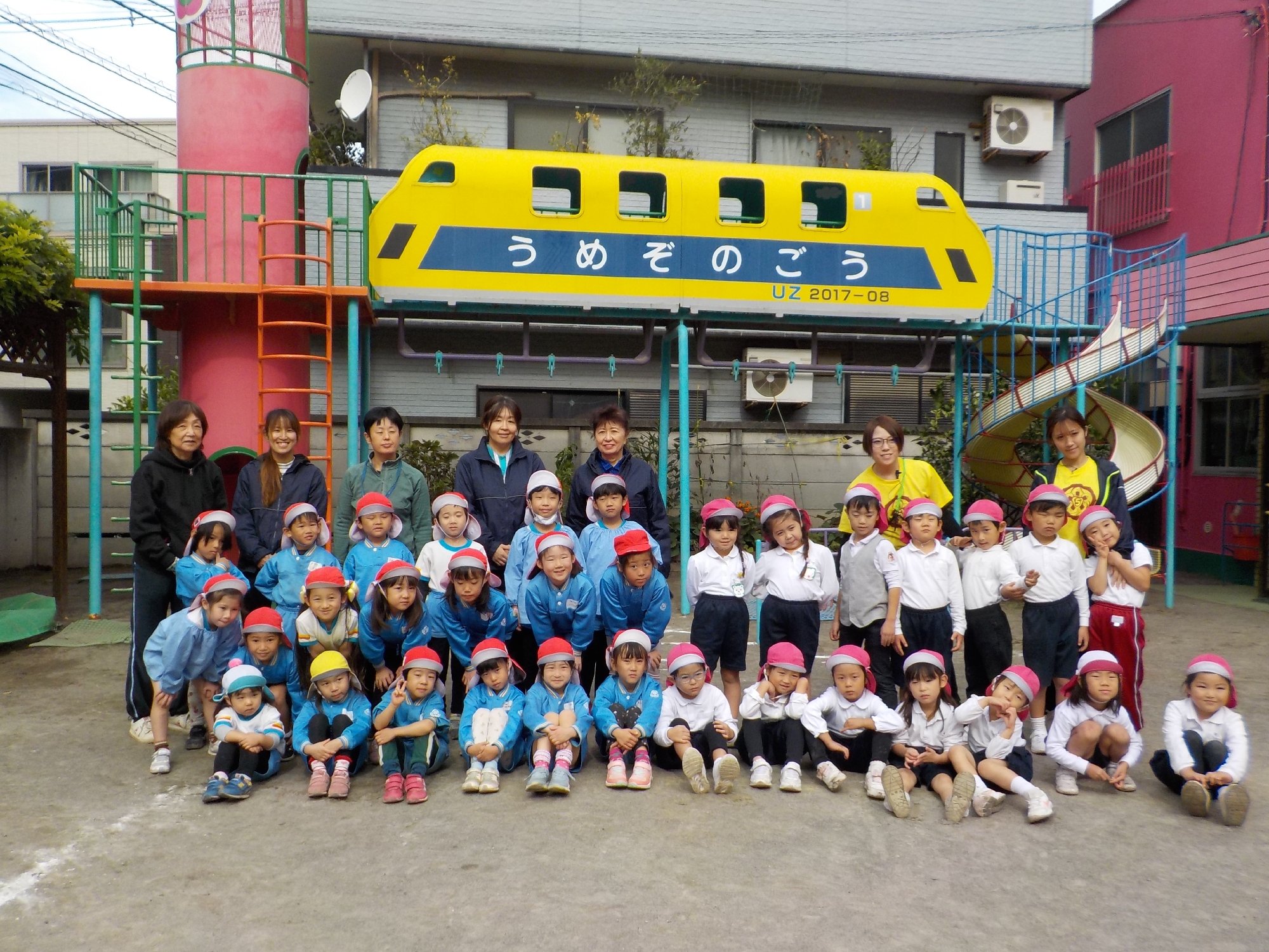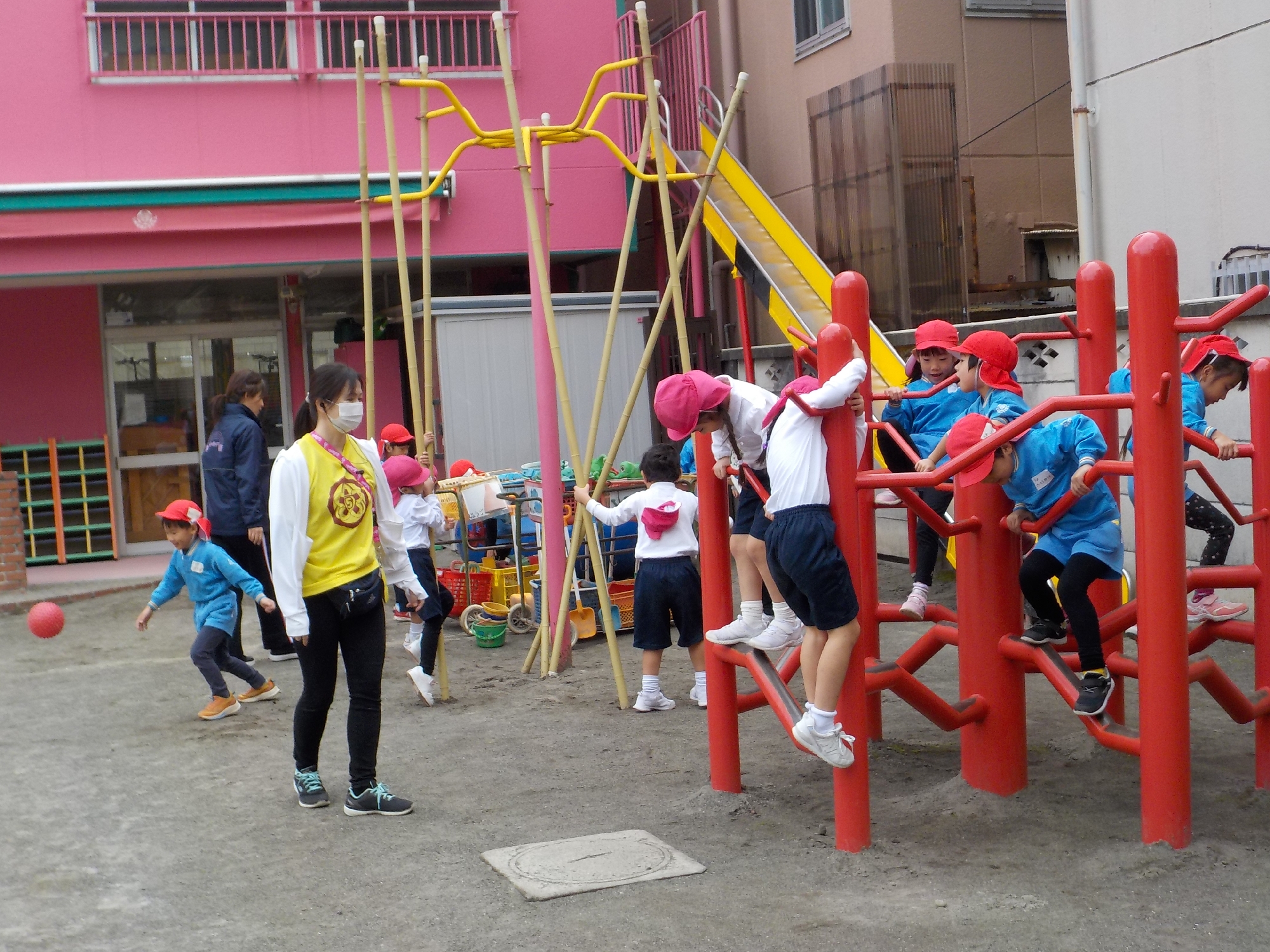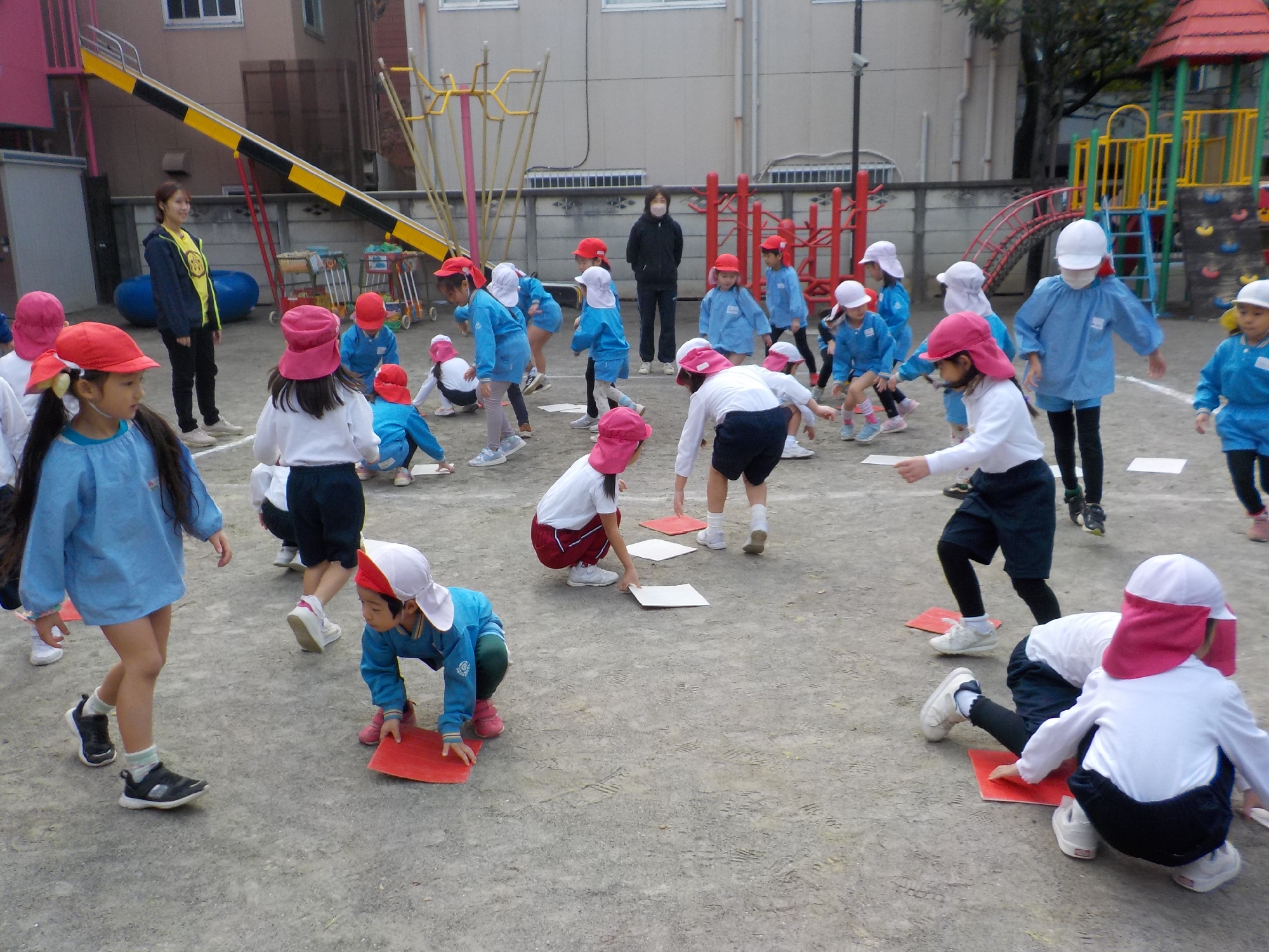 2回目の交流会は、女躰神社子ども園の年長さんが梅園に来園し、全体を赤白に分けて