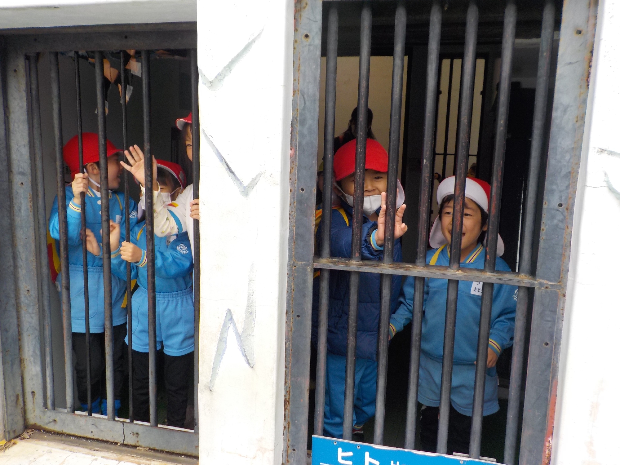 白くまの檻に入って、動物気分を味わいました。