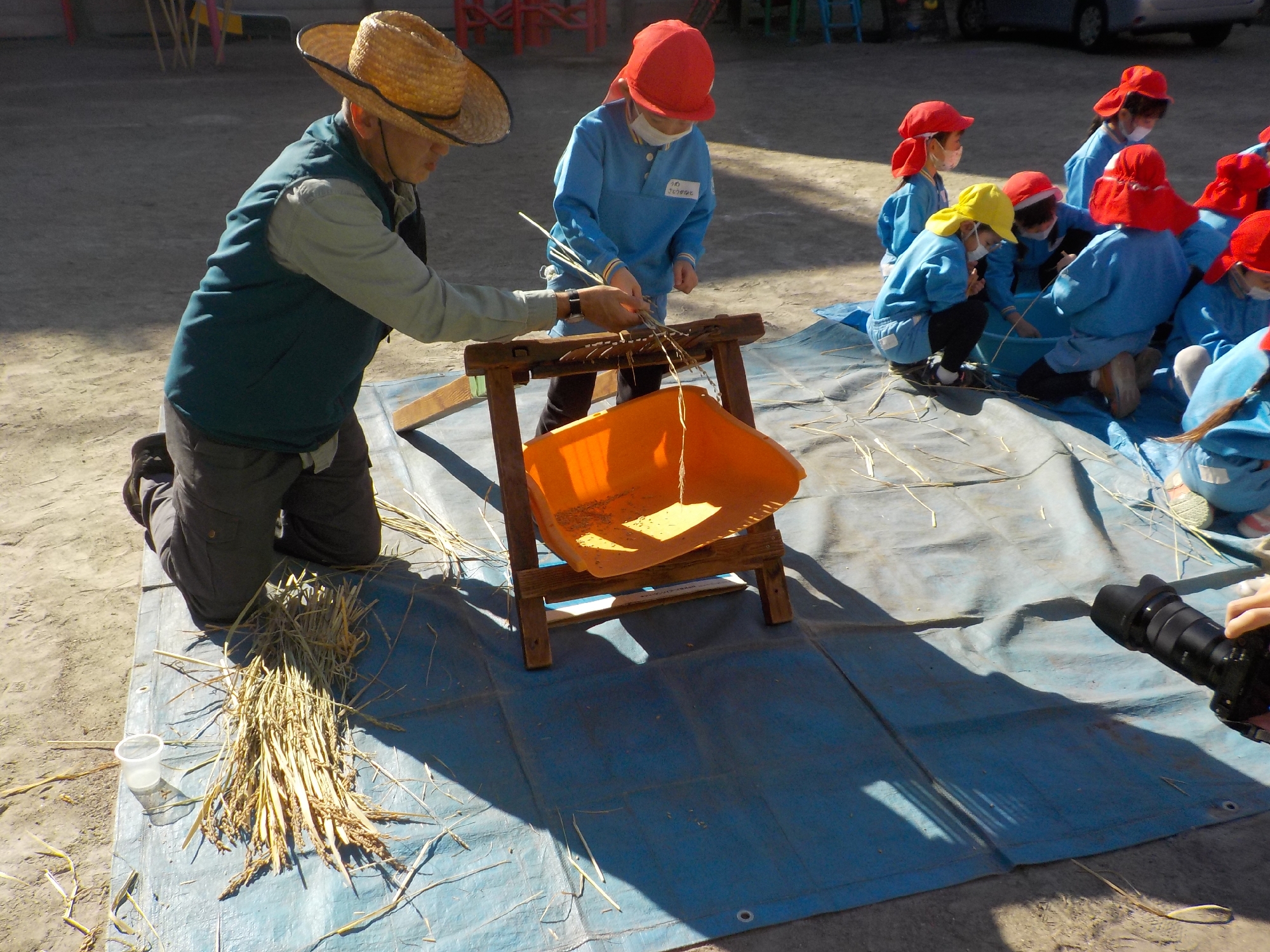 脱穀は大正期の「千歯こき」と